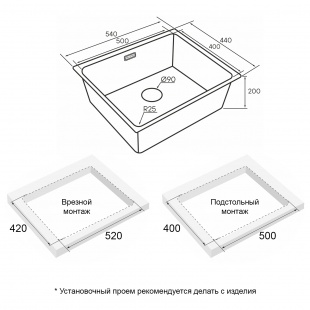 Встраивается выше уровня столешницы / встраивается ниже уровня столешницы
