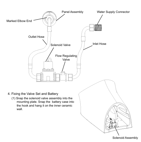 Блок с подключением к 220 в комплекте: блок крепится внутри писсуара к нему подключается холодная вода и питание.