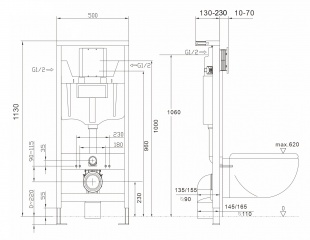 Инсталляция пневматическая ABBER AC0108 с клавишей AC0126BG золото брашированное