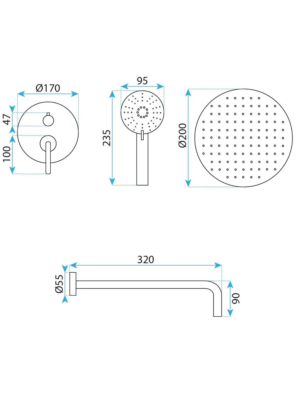 Размер душевой лейки: 20 x 20 см