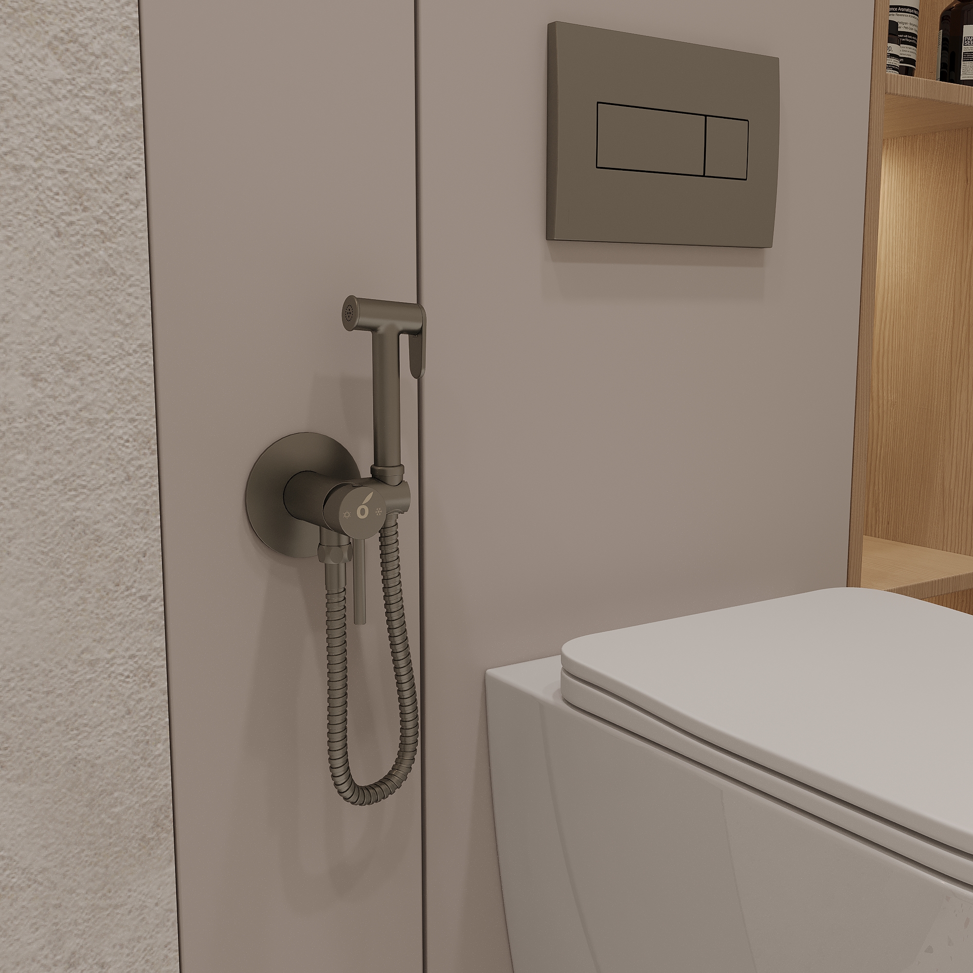 Смеситель скрытого монтажа с гигиеническим душем Oliveeka Gun Metal (оружейная сталь) Art. OL-829902-BGM