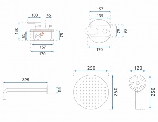 Размер душевой лейки: 25 x 25 см